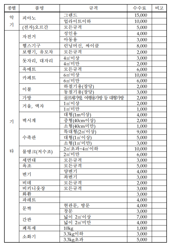 장농, 침대, 매트리스 등 가구류와 소화기, 화분등 구분하기 애매한 물건을 버릴때 내는 수수료 입니다.